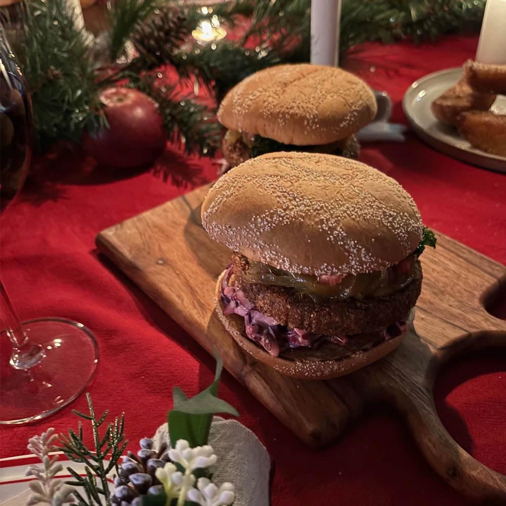 En smakfull julfest i varje tugga – denna vegoburgare kombinerar härliga texturer och sötsyrliga smaker som garanterat sprider glädje!
