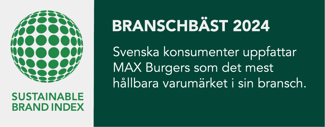 - Jag är stolt över att MAX återigen har blivit rankade som branschbäst i hållbarhet och att svenskarna ser vad vi som företag gör. En viktig målsättning för MAX är att få fler företag att jobba med hållbarhet som en del av kärnverksamheten. MAX fortsätter hela tiden att öka sina ansträngningar för att vara en förebild inom hållbarhet och lönsamhet samtidigt. Det är så vi allra bäst inspirerar våra branschkollegor att ställa om, säger Kaj Török som är hållbarhetschef på MAX Burgers.