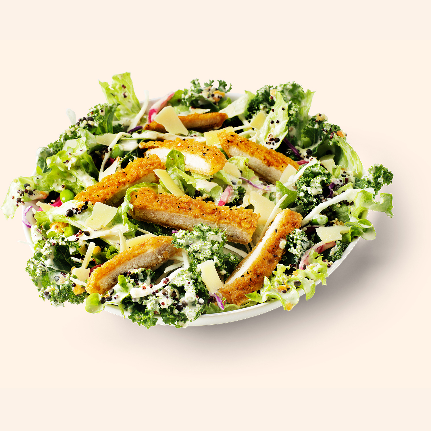 De två salladerna består av en matig salladsbas där gästen väljer mellan Crispy Chicken och Grilled Chicken. Salladerna går även att få vegetariska med Grilloumi®, Real Green eller Crispy Supreme. Sesame & Ginger Salad har tagit inspiration från Asien med inslag av soja, sesamolja, ingefära och chili. Green Kale Caesar Salad är en modern och uppdaterad version av den klassiska Caesarsalladen.