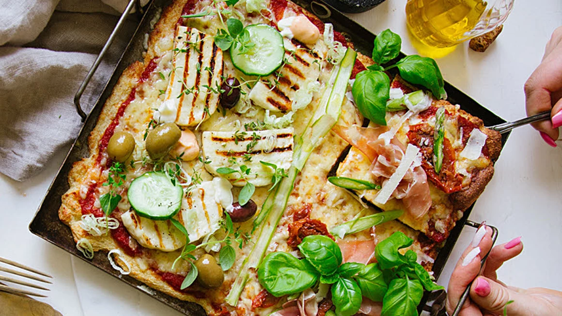 10. Förbered din topping, riv osten, grilla/stek halloumin, låt oliverna rinna av, skär gurkan och det du väljer att ha på.