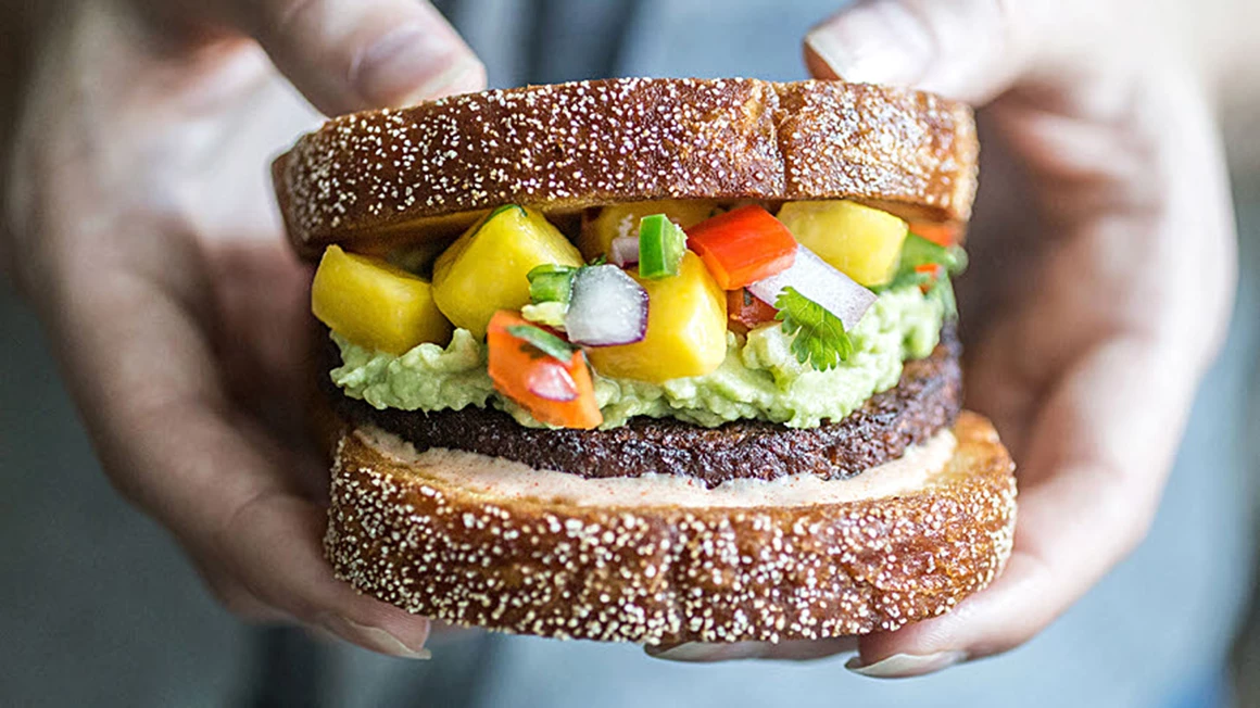 Vegoburgare med mangosalsa på Frisco Hot Melt Toast (produkt utgått)
